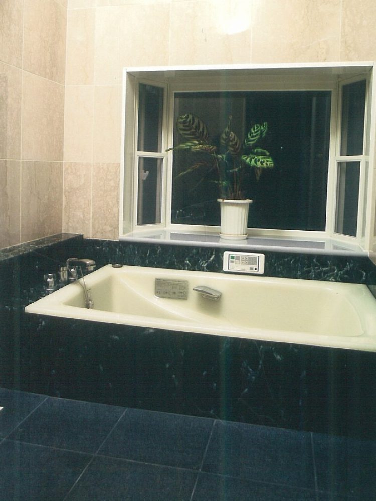 白大理石と蛇紋を大胆に使用したお風呂お風呂