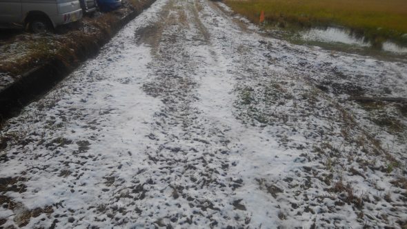 2019.12.06 その他 初雪 うっすらとではございますが、今朝は雪が積もっておりました。 本社展示場のお墓、墓石も雪化粧。 駐車場付近のあぜ道にも。 遅まきながら急いでタイヤ交換しました。 皆様も車の運転にはくれぐれもご注意くださいませ。