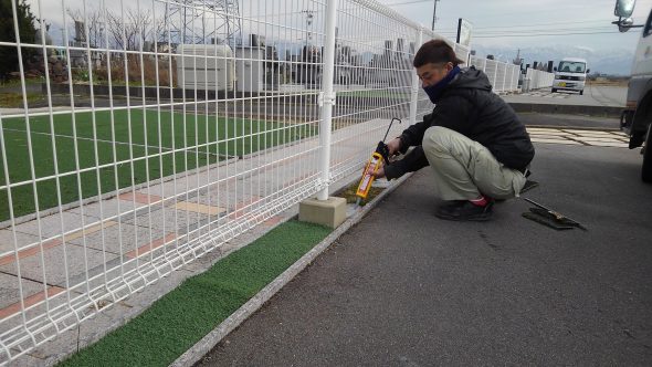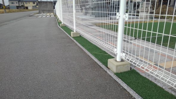 こちらは昨日、たまたま寄った大宮町輝峰苑にて人工芝の取付を行っている様子です。