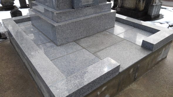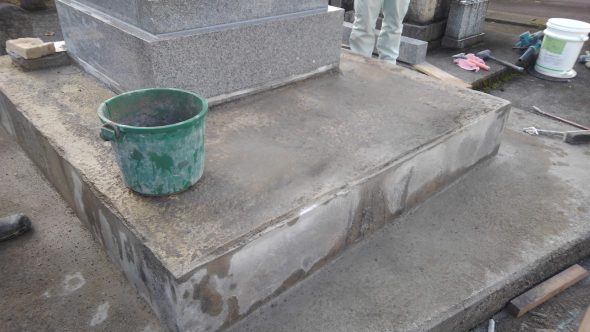 勾配、目地を調整して張り直し、同時にお墓全体のクリーニングも行いました。