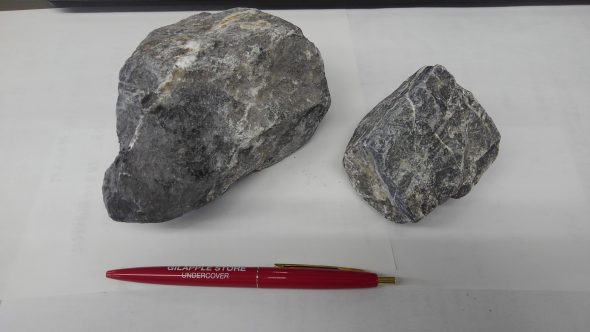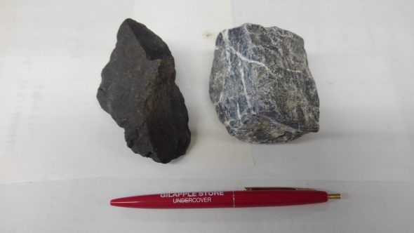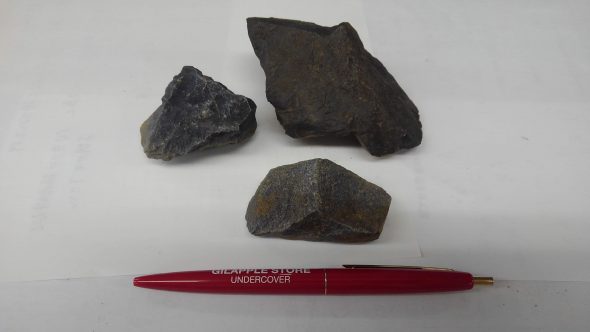 黒系の自然石で割肌面という共通点はありますが、所変わればとはよく言ったもので類似品なのかなと思い、サンプルを取り寄せたのですが違いは歴然でした。