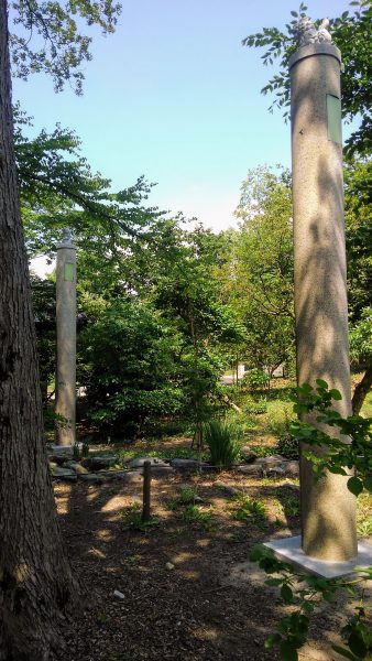 以前も申し上げましたが、こちらの丸柱は元々神社内に設置されていた鳥居でございまして、老朽化に伴い解体した物を再利用し設置させて頂きました。