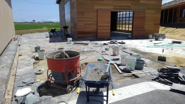 天候次第で作業の進捗はかなり変動致しますので、施工完了まで天気が良い日が続いてくれることを願うばかりです。(ちなみに今日は雨です。。)