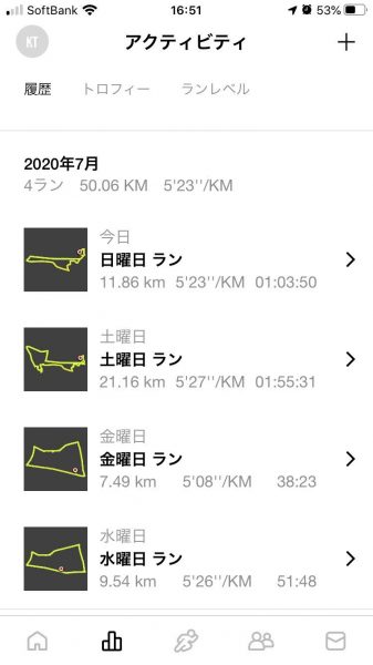 ですが、連日の雨天ランの疲れで記録はあまり伸びてません。。