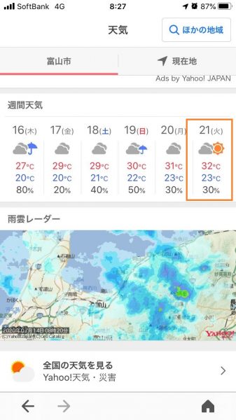 北陸地方の梅雨明けはだいたい7月20日過ぎ。今年は梅雨明けしないのではないかと疑心暗鬼なりつつあった中、今朝は吉兆な週間天気となっておりました。