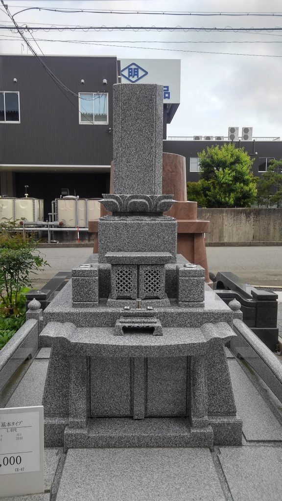 特徴:従来の和型墓石に比べ高さを押さえ、お掃除が楽に行えるようになりました。