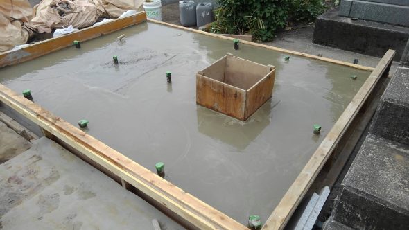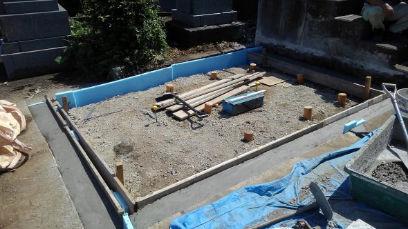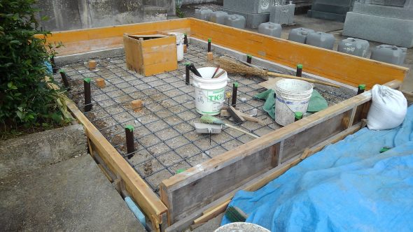先日解体が完了した、お墓工事の現場でございますが本日基礎コンクリート打設でございました。