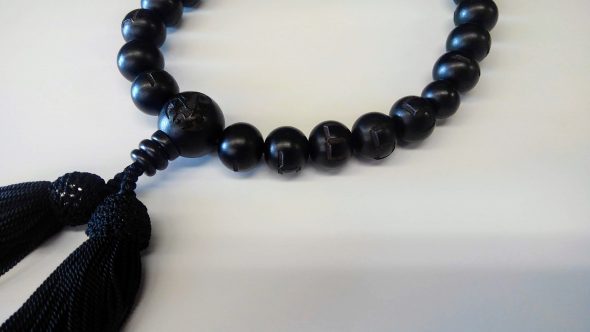 ちなみに数珠を取扱う上での注意点として法具ですので大切に取扱い、携帯時には鞄などに直接入れるのではなく数珠袋などの専用袋に入れ、一時的に置く際は袱紗(ふくさ)などの上に置き、畳や机の上に直に置いてはならないという事です。。