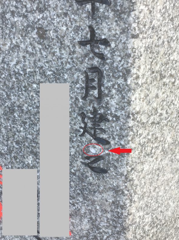 「建之」の「之」の字の上の点の部分ですが確かにくっきり白く見えます。。