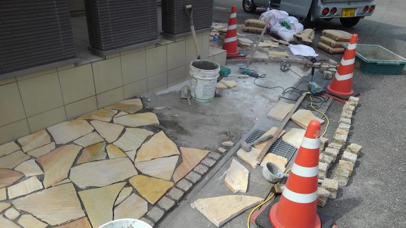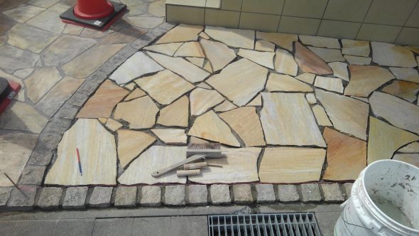 2020.09.24 その他 アルビノミックス 市内の住宅にて乱張り工事を施工中でございます。 クォーツサイトアルビノミックスという建築石材でございまして、クォーツサイトとは砂岩が地殻変動によって圧縮されて固まった天然石のことになります。主にお庭や玄関先のアプローチに用いられます。 明日、目地を施工して完了となります。 墓石工事と共にエクステリア工事も是非、藤田石装まで。 藤田石装お客様相談室 0120-057-148