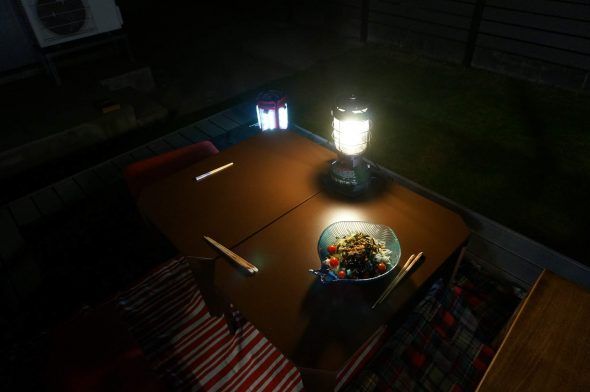 先日の中秋の名月のタイミングで自宅のウッドデッキにて晩御飯を食べました。何が気に入ったのか娘が「お外でご飯食べたい」と言うので、つい数日前もテーブル出して、ランタン出して、蚊取り線香焚いて、と準備したのですが食事の途中に「寒い」となり、結局室内へ全部移動しましたとさ。。