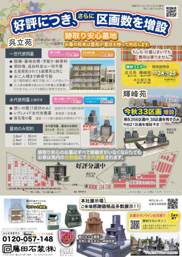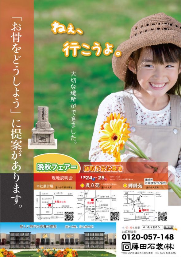 墓石工事のご相談、墓地をお探しの方はぜひ藤田石装まで。
