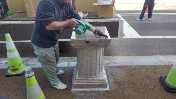 モニュメント本体は繊維強化プラスチックという素材で出来た石屋は専門外の物でございまして、然るべき場所で制作された然るべき物でございますが石製台座や石製モニュメントは制作致します。