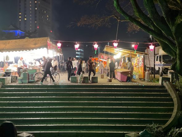 平日の夜だったので人もまばらではございますが、出店は毎年のごとく営業しておりました。