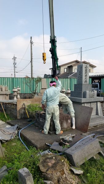 2021.04.21 お墓づくり お墓の建て替え 本日もお墓の解体工事の現場でございますが、こちらは墓じまいではなくお墓の建て替え工事でございます。 明治の時代に建立されたお墓でございますが、老朽化に伴い解体新設の工事を承りました。 今年最初のレッカー作業でございました。 お墓の建て替えはぜひ藤田石装まで。 藤田石装お客様相談室 0120-057-148