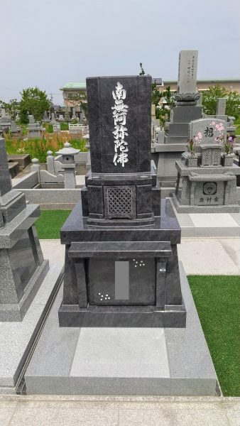 2021.05.14 お墓づくり 経典型(和洋折衷型) スモールサイズ マハマブルー 型:経典型 スモールサイズ (当社オリジナルデザインの和洋折衷タイプ) 石種:マハマブルー(インド産御影石) サイズ:巾900 奥行860 高さ1645 床:G603(白御影石) 墓石工事のご相談、墓地をお探しの方はぜひ藤田石装まで。 藤田石装お客様相談室 0120-057-148