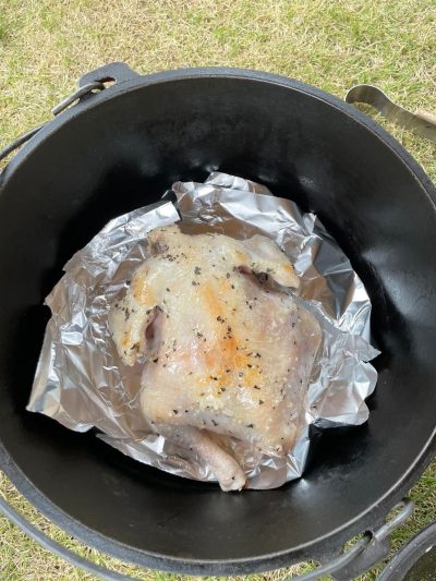 中も外も入念に洗って、下味を付け軽くフライパンで焼き色を付けてからダッチオーブンにセット。