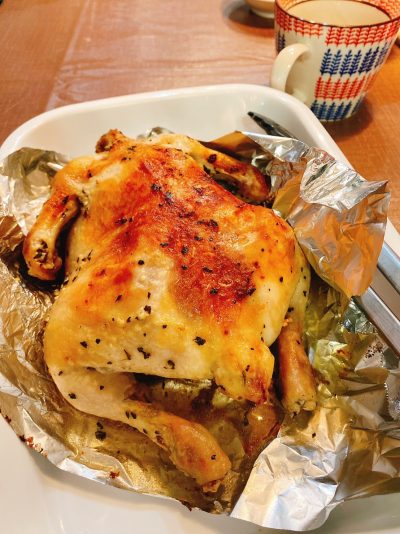 昨日はコストコで買っていた丸鶏をローストチキンにしました。