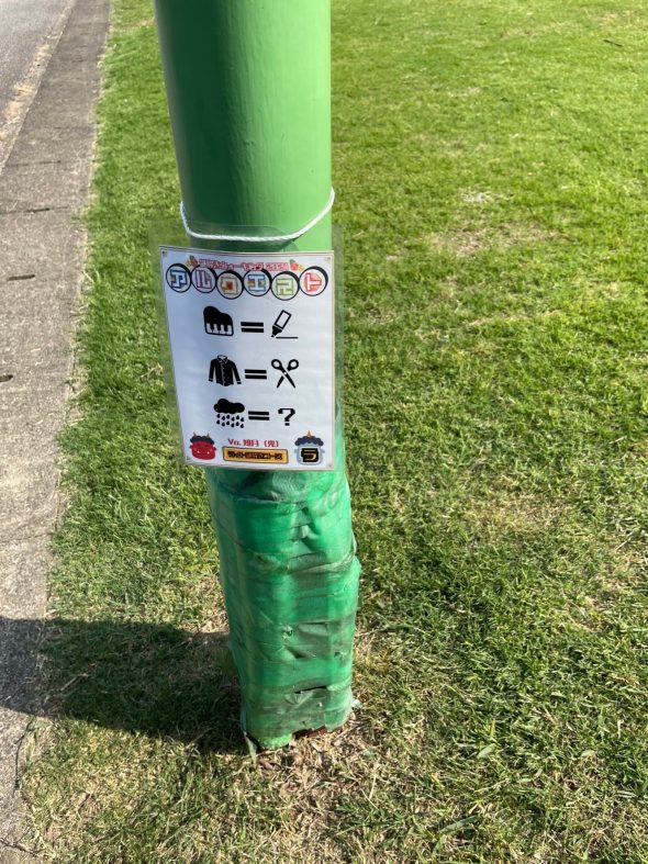 先日、環水公園や太閤山ランドで開催されておりまして、娘と一緒に参加してきました。公園内の電柱や街灯に問題が縛り付けられておりまして、解きながら歩き進むわけでございますが、全ての問題を解く頃には2㎞以上歩いているという事で、子供が楽しみながら体も動かすことができる良いイベントでした。