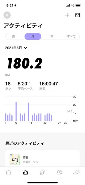 ランの方は今月も比較的優秀、昨日の時点で180㎞走破です。