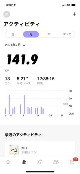 今月は暑さ他、様々な理由がありランニングの方は捗りません。
