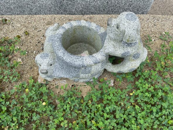 呉立苑に設置しております、ワンちゃんの水鉢でございます。