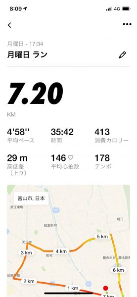 そんな中、昨日のランニングは久しぶりに1キロ5分を切りました。