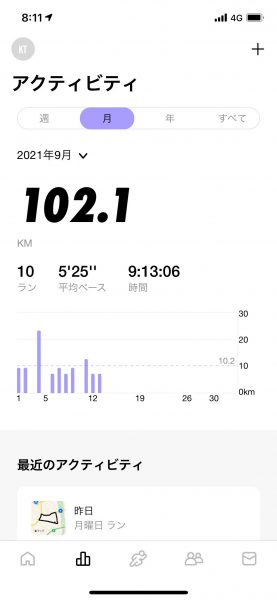 今月は折り返し前に100キロを達成できたので、なかなか順調と言えますが気を引き締めて頑張ります。