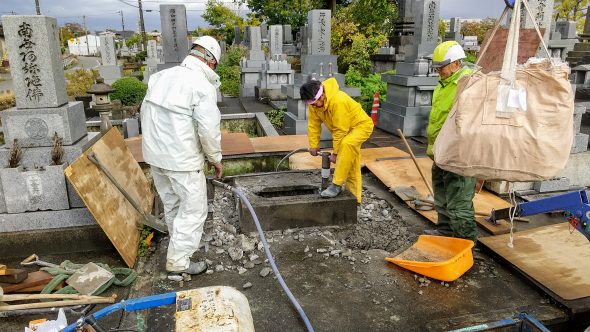 昨日のお墓解体現場です。2柱納骨されておりましたが、呉立苑にお墓を新設されるご予定で出来上がり次第、そちらに改葬予定であります。