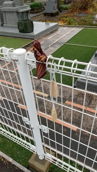 大宮町輝峰苑に昨日立ち寄ったところ、どなたかの落とし物と思われるタオルと数珠がフェンスに括り付けられておりました。過去には車の鍵などの落とし物もありました。