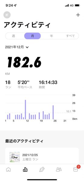 問題有りはランニングの方で、200㎞まであと18㎞余りとなっておりますが、歩道の雪が年内無くなりそうにないので非常に厳しい状況です。。ジムでも行って走るしかないでしょうか。