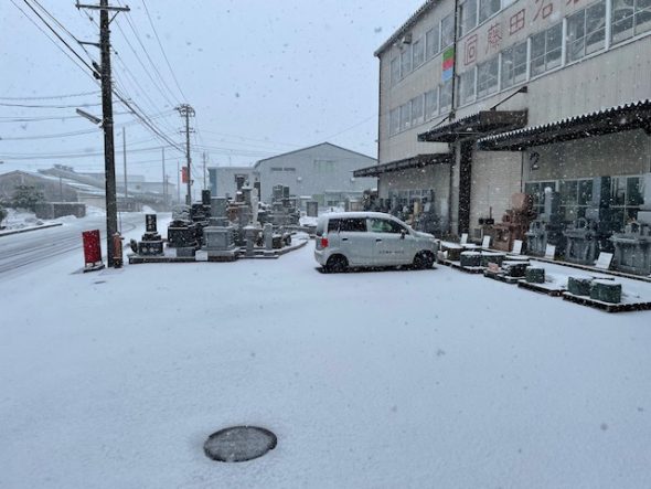 今朝の出社後、8時前から降り始めて30分くらいで真っ白になりました。7時半までは普通に地面も乾いていたので、予定外ではございましたがこれくらいの雪は問題ございません。