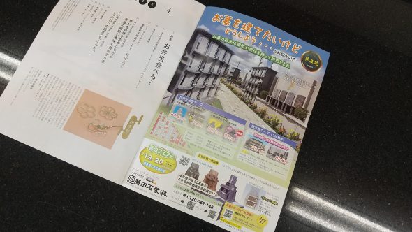 2022.03.11 お墓づくり 2022年4月まんまる広告掲載 月間フリーペーパーのまんまる4月号に当社の広告が掲載されております。 記事をご覧になった方から昨日、早速お問い合わせを頂きまして誠にありがとうございました。 ご興味のおありになる方はお気軽にお問い合わせください。 墓石工事のご相談、墓地をお探しの方はぜひ藤田石装まで。 藤田石装お客様相談室 0120-057-148