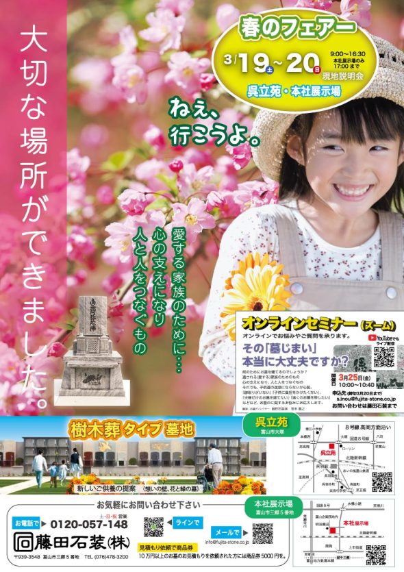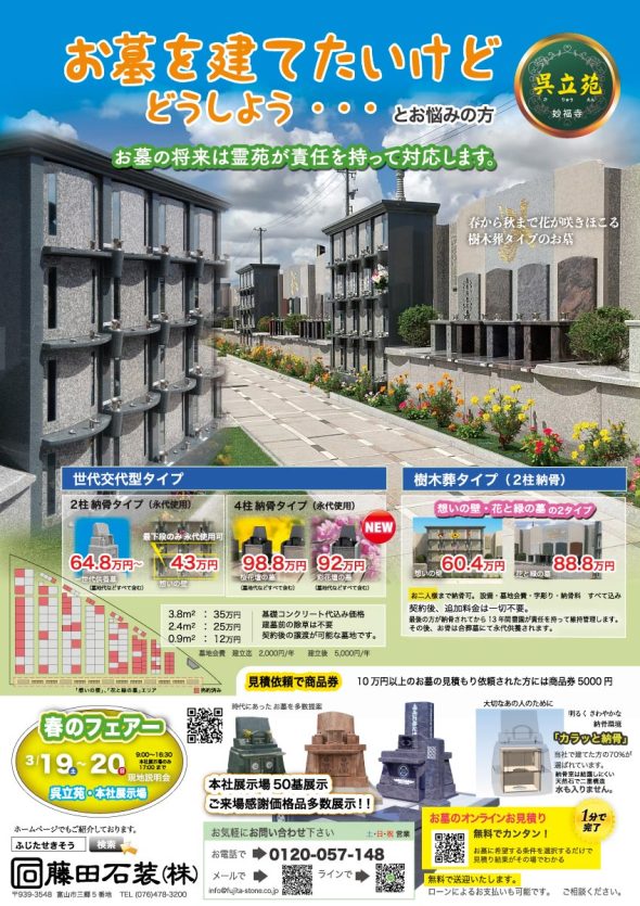 先週末より、「まんまる広告」や「春フェアーの折り込みチラシ」等の影響により呉立苑のお問い合わせを多数頂戴しております。