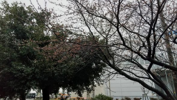 そんな中、当社敷地内の桜は少し色付いておりました。