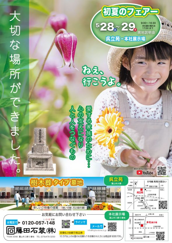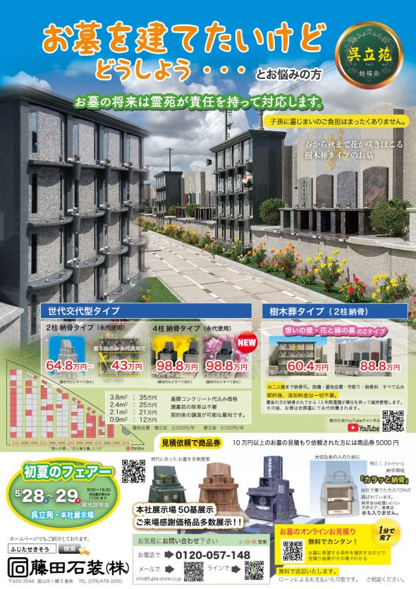 さて、「初夏のフェアーお墓ご相談会」は明日からでございます。昨日もたまたま呉立苑におりましたら見学のお客様が来場されまして、ご案内させて頂きました。