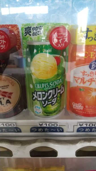 数日前から気になっているのがこちら。弊社工場内に設置してある自動販売機のラインナップの中にメロンクリームソーダがございまして、その見本缶に「バニラアイス入り」とあります。アイスが溶けずに入っているのか?アイスが溶けずに入っているという事は、もはや凍っているという事で飲み物ではなくなってしまっているのか。。みたいなことを考えてしまいました。しかも、よく見ると「メロンクリームソーダ」の上に「カルピスソーダ」と表記されております。