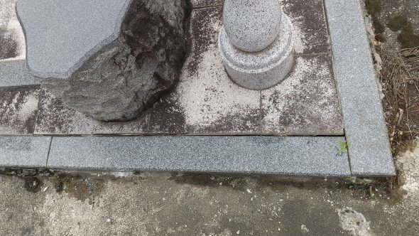 こちらはその一例でございますが経年劣化により床の目地が剥がれ、縁石に隙間が見られます。放置しておくと隙間が更に広くなり雑草が生えますし、縁石の破損にも繋がりますので速やかにに補修させて頂きます。