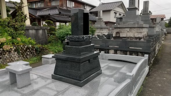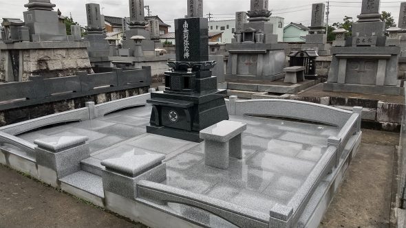 2022.08.30 お墓づくり 経典型 ミドルサイズ 先日完成したお墓です 型:経典型 ミドルサイズ (当社オリジナルデザインの和洋折衷型) 石種:ナイトグリーン(インド産御影石) サイズ:巾1030 奥行955 高1745 カラッと納骨 床及び外柵:G603L(中国産白御影石) 墓石工事のご相談、墓地をお探しの方はぜひ藤田石装まで。 藤田石装お客様相談室 0120-057-148