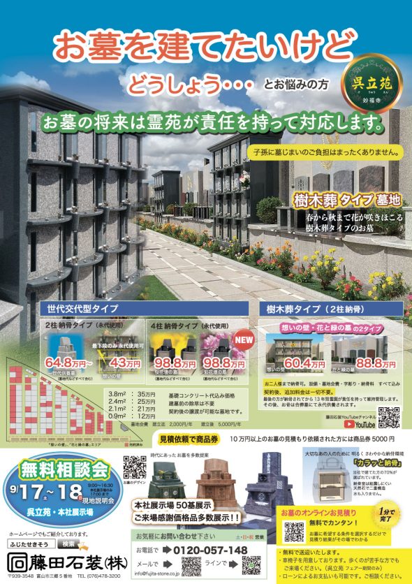 明日と明後日は「秋のフェアーお墓ご相談会です」