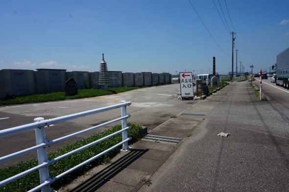 富山方面から高岡方面に向かって左側を見て頂くと、下記写真の入口の看板が見えてまいります。