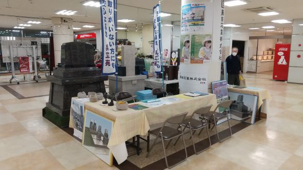 久しぶりのアピア出店でしたがお墓建立のご相談や修繕、跡取りがおらず墓地はあるが、お墓を建てるかどうか悩んでおられる方など、様々なお話をお伺いする事ができました。呉立苑の樹木葬タイプのお墓などをお薦めさせて頂きましたが、いずれにしてもお客様にとって最善の形になる様に努めます。