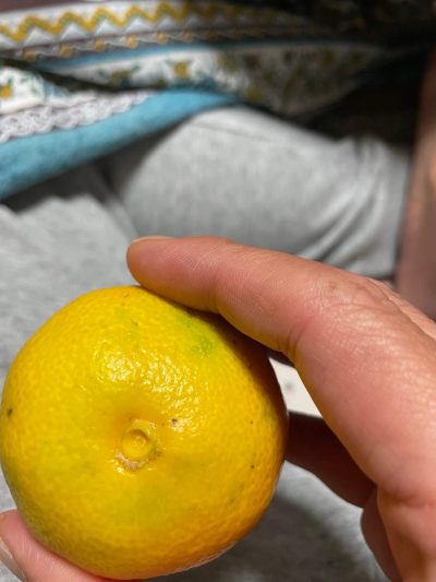 皮をむく前に緑のへたを取って、くぼみを数えれば房の数がわかるという例のやつです。