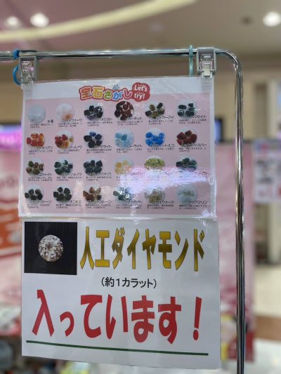 1回(時間制)で¥1000という、なかなかの金額ではございますがそれなりに楽しかったのではないでしょうか。ちなみに小さいケースをもらえるのですが、その中に入る分だけ石は持って帰れます。