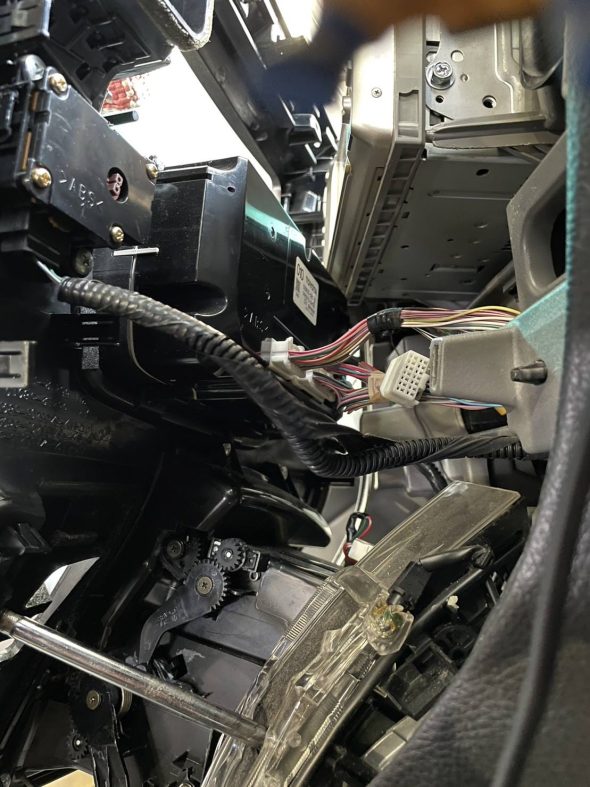 サイドをしっかり引いてシフトレバーをニュートラルにしてインパネを外しますが、なかなか外れず四苦八苦しました。各種配線も一時的に外さなくてはなりませんので途中の画像を撮影しておきました。