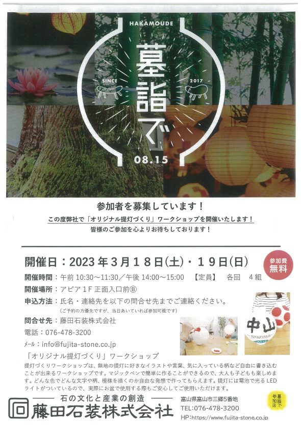 アピアでは「オリジナル提灯作り」のワークショップを同時開催致します。