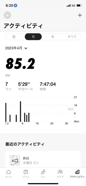 無事完走、出来れば記録更新という目標を掲げておりますが4月に入ってからはそれなりの練習を積んでおります。