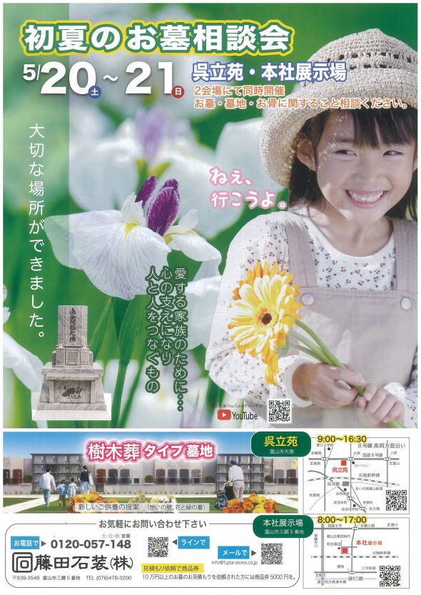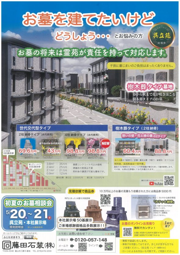 昨日よりお墓ご相談会を開催しております。昨日は本社展示場および呉立苑に多数ご来場頂きまして誠にありがとうございました。