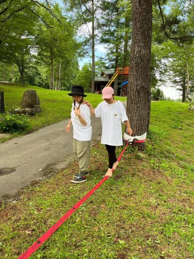 ちなみにこちらのスラックラインを一人で取付している最中にやられました。