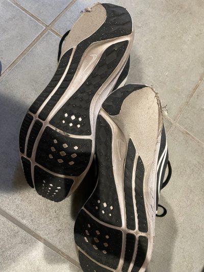 夏はソールの減りが早いので、6月から履き始めた靴が大変な事になりました。暑い夏、ご苦労様でした。今日から新しい靴で走ります。